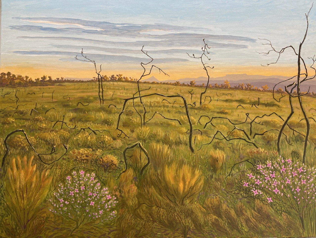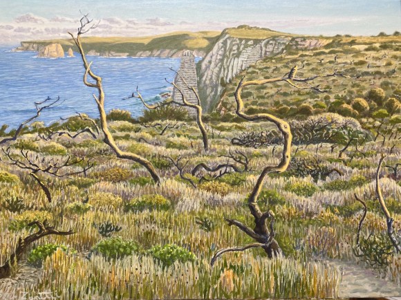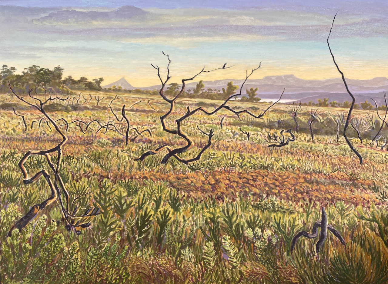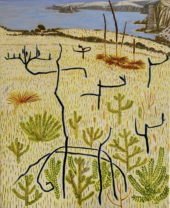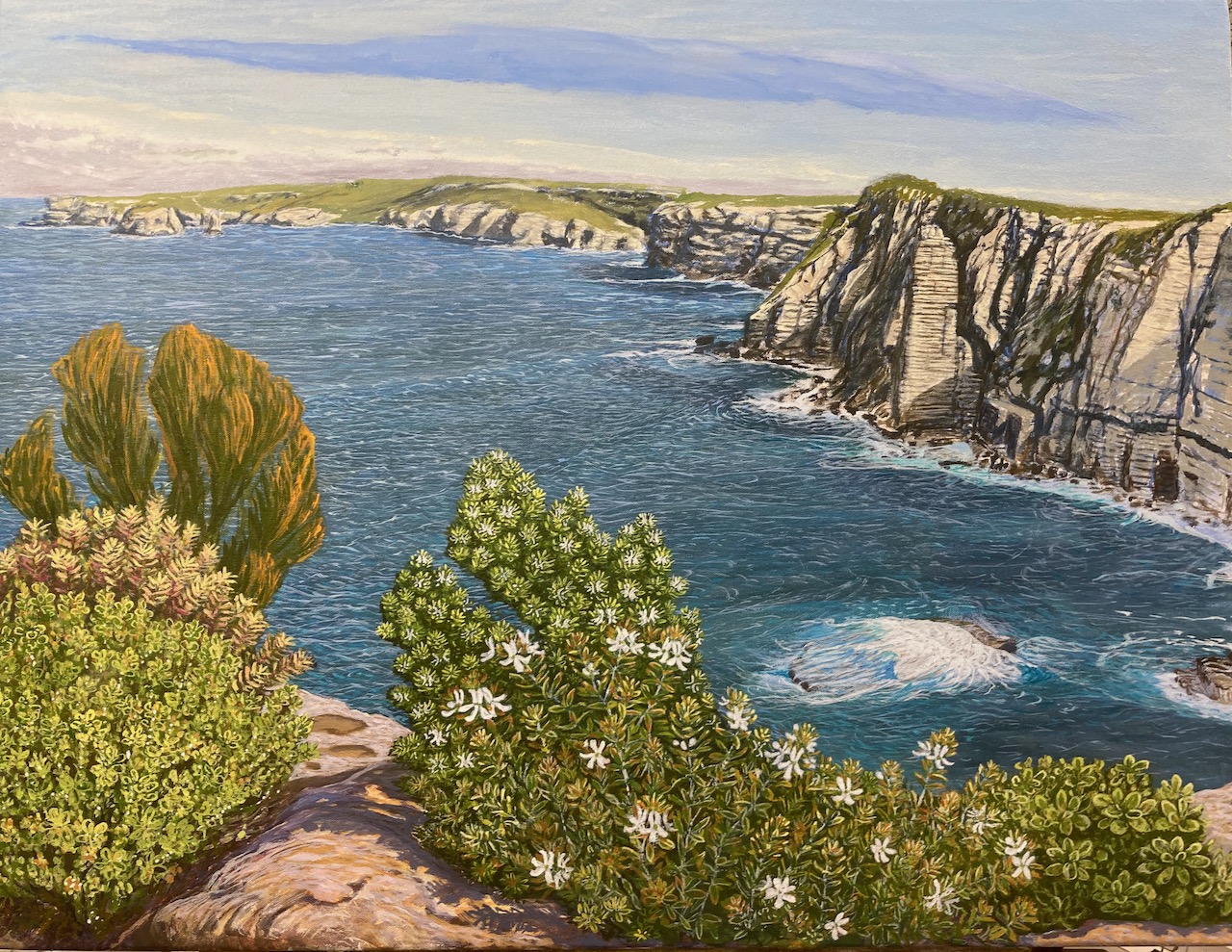 Crookhaven Heads Wind Forms, Acrylic on CanvasCrookhaven Head, Acrylic on CanvasUp Endings Whale Point, Acrylic on CanvasCliff Tops and Drum Rock, Acylic on Canvas Cliff Tops Afternoon Light, Acrylic on CanvasThe Third Spring, Acrylic on CanvasMerrimbula Trig Lookout, Acrylic on CanvasDusk Light Bundarwa, Acrylic on CanvasFire Trail and Water Tank, Oil on CanvasView to Jervis Bay, Oil on CanvasThe Stone Garden, oil on CanvasWinter, Westringia, Clifftops, Acrylic on CanvasView to Cullunghutti, Oil on CanvasFlannel Flowers – Beecroft Head, Gouache on Paper (Sold)Beecroft Head, Gouache on PaperSummer Afternoon – Beecroft Head, Gouache on Paper (sold)Ravine and Flannel Flowers, Acrylic on CanvasBeecroft Dusk, Acrylic on Canvas 2023 (Sold)