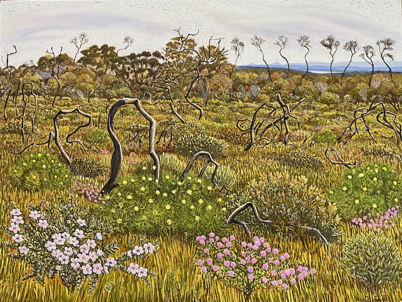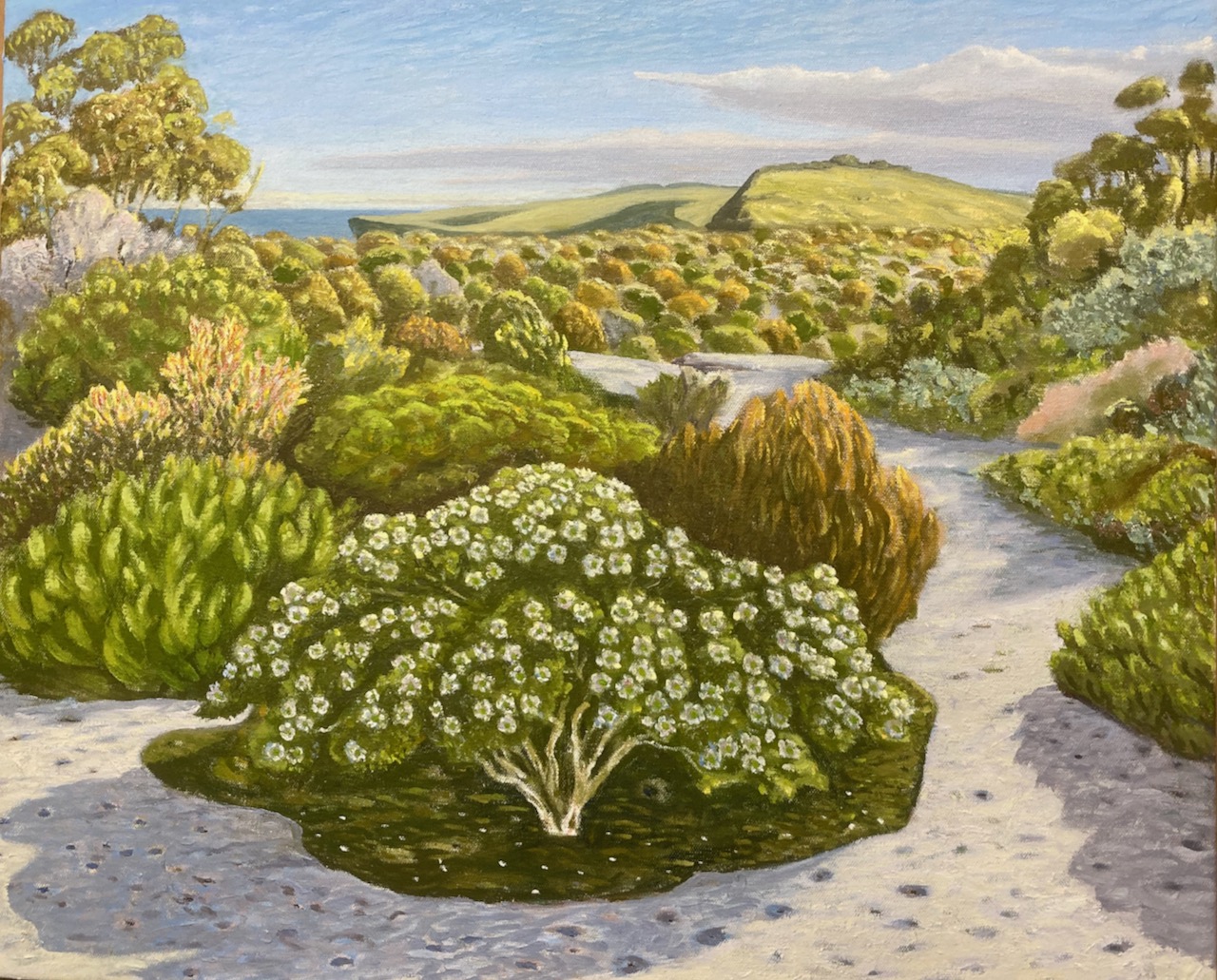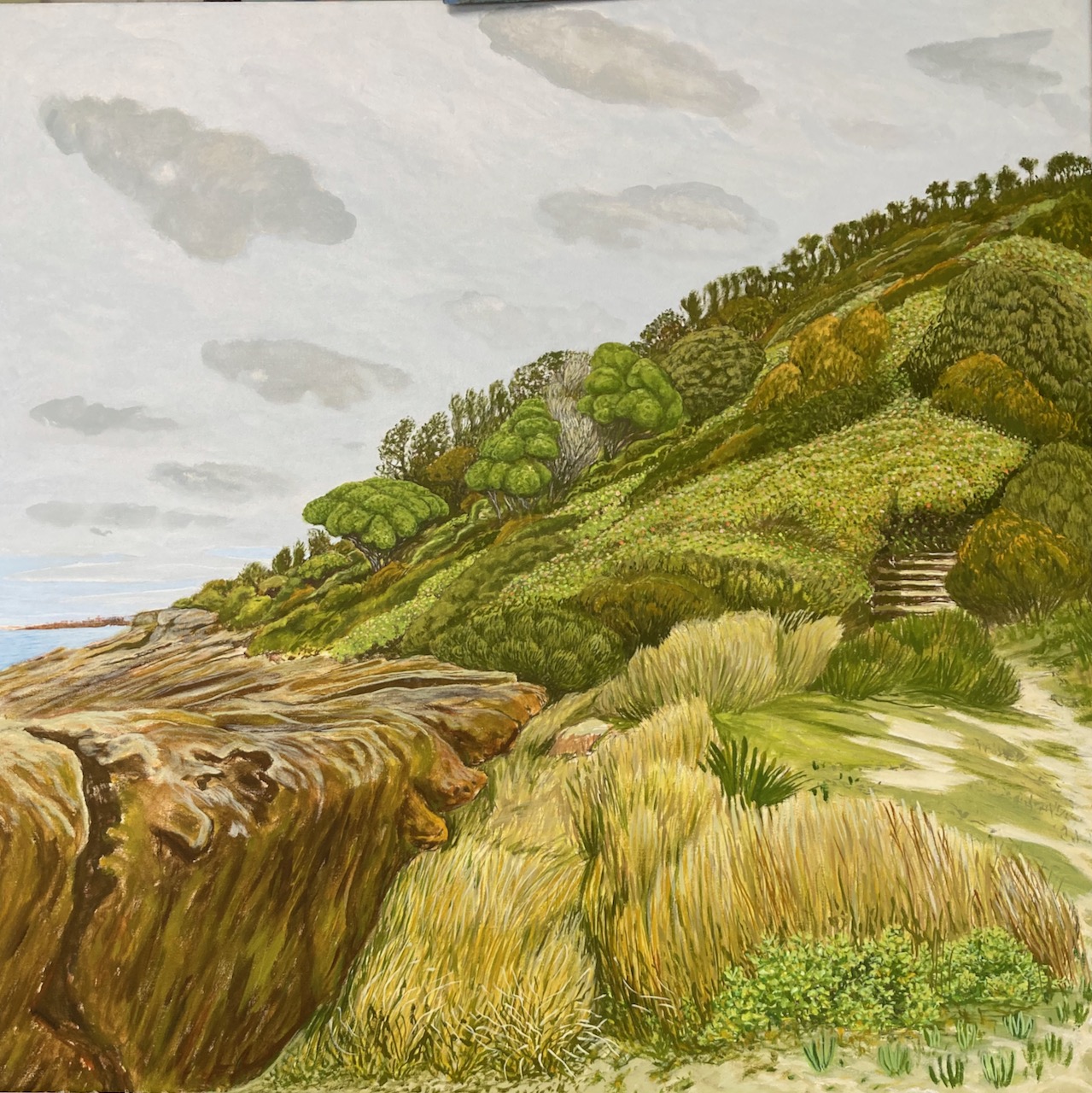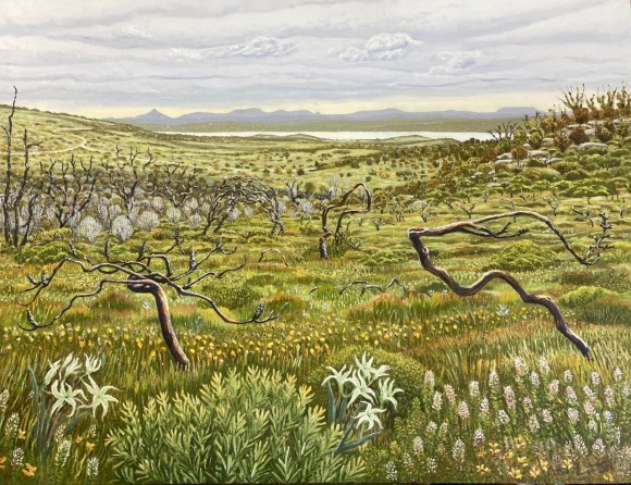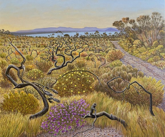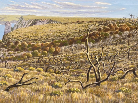 Crookhaven Heads Wind Forms, Acrylic on CanvasCrookhaven Head, Acrylic on CanvasUp Endings Whale Point, Acrylic on CanvasCliff Tops and Drum Rock, Acylic on Canvas Cliff Tops Afternoon Light, Acrylic on CanvasThe Third Spring, Acrylic on CanvasMerrimbula Trig Lookout, Acrylic on CanvasDusk Light Bundarwa, Acrylic on CanvasFire Trail and Water Tank, Oil on CanvasView to Jervis Bay, Oil on CanvasThe Stone Garden, oil on CanvasWinter, Westringia, Clifftops, Acrylic on CanvasView to Cullunghutti, Oil on CanvasFlannel Flowers – Beecroft Head, Gouache on Paper (Sold)Beecroft Head, Gouache on PaperSummer Afternoon – Beecroft Head, Gouache on Paper (sold)Ravine and Flannel Flowers, Acrylic on CanvasBeecroft Dusk, Acrylic on Canvas 2023 (Sold)